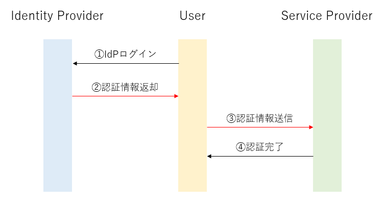 SP(ServiceProvider):認証情報を利用するシステム ex.)BOX,Slack